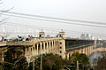 武汉长江大桥建于1955年9月1日,于1957年10月15日建成通车,大桥的建设得到了当时苏联政府的帮助,苏联专家为大桥的设计与建造提供了大量的指导,但是中苏关系破裂之后,苏联政府就全部撤走了专家,最后的建桥工作是由茅以升先生主持完成。大桥建成之后,将武汉三镇连为一体,极大的促进了武汉的发展。从全国的宏观角度来看,大桥的建成意义更在于将京广铁路连接起来,使得长江南北的铁路运输通畅了。毛泽东的诗词“一桥飞架南北,天堑变通途”,正是描写武汉长江大桥的气势和重要作用。大桥自建成以来,一直都是武汉市的标志性建筑。正桥是铁路公路两用的双层钢木结构梁桥,上层为公路桥,下层为双线铁路桥,桥下可通万吨巨轮,八个桥墩除第七墩外,其它都采用“大型管柱钻孔法”,这是由我国桥梁工作者所首创的新型施工方法,凝聚着我国桥梁工作者的机智和精湛的工艺。