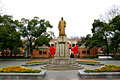 ¡¡¡¡¾ÉÖ·Ãæ¶ÔÔÄÂí³¡£¬ÔºÃÅÍâËÜÓÐËïÖÐɽͭÏñ£¬Éí×ų¤ÅÛÂí¹Ó£¬×óÊÖÖ´ÕÈ£¬ÓÒÊÖ³Öñ£¬ÃæÄ϶øÁ¢£¬ÄýÊÓÔ¶·½£¬ÒDZíׯÑϰ²Ïê¡£ (CCN´«Ã½Í¼Æ¬Íø ÔøÐ¡·ï)