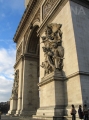 巴黎凯旋门高约50米,宽约45米,厚约22米。凯旋门的四周都有门,门内刻有跟随拿破仑·波拿巴远征的286名将军的名字,门上刻有1792年至1815年间的法国战事史。其中最负盛名的是面向香舍丽榭田园大街、由著名雕刻家吕德设计雕塑的《马塞曲》。凯旋门的拱门上可以乘电梯或登石梯上去,石梯共273级,上去后第一站有一个小型的历史博物馆,里面陈列着介绍凯旋门建筑史的图片。另外,还有两间配有英法语言解说的电影放映室,专门放映一些反映巴黎历史变迁的资料片。再往上走,就到了凯旋门的顶部平台,游人们从这里可以鸟瞰巴黎名胜。