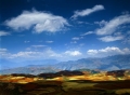 是在不同的角度看大片起伏有致的山坡。不同季节山坡上不同的地块有不同的色彩,勤劳的农民在其中耕作或收获。丽日蓝天,白云红土,赤橙红绿青蓝紫构成的美景。