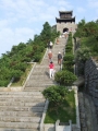 沿梯爬往东门,站在城墙上,右望,可见在原址新修的长城盘旋而上山梁,左观,是保存完好的约50米的东门城墙。顺城墙而走,就来到了那座高高耸立的烽火台,烽火台约八米高,进内看有如一天井,依稀可辨有三层,西侧开有一石门,其余三面均设有枪眼、炮口以及了望口。虽然荒芜沧桑,但雄关韵味犹存。